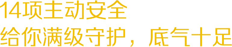 14项主动安全:前碰撞预警、自动紧急制动、盲区监测、车道偏离预警、并线辅助、开门预警、后碰撞预警、倒车侧向警告+紧急制动、交叉路口辅助、行人/自行车安全辅助、前视+室内行车记录仪、后排两侧预紧限力安全带、后排安全带未系提醒、前排预紧限力安全带+CLT锁舌,装备了满级的安全守护配置。